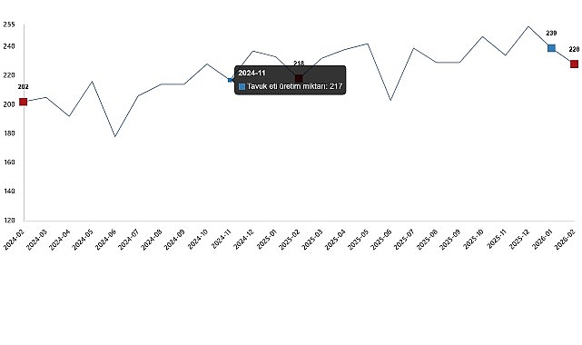 Tavuk eti üretim miktarı, Şubat 2026
