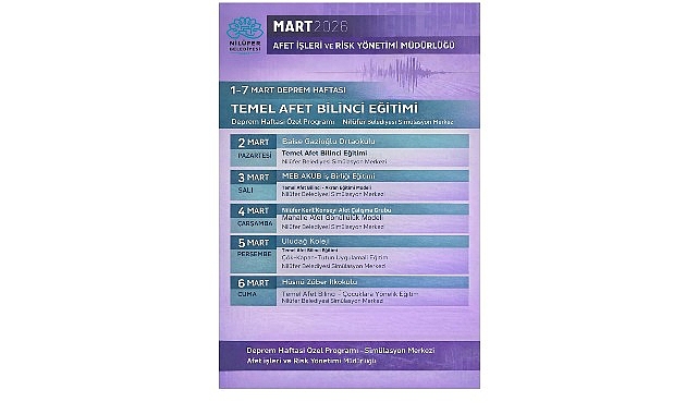 4 Mart Çarşamba günü Nilüfer Kent Konseyi Afet Çalışma Grubu’nun katılımıyla Mahalle Afet Gönüllülük Modeli’nin ele alınacağı eğitimlerde acil durum tahliye senaryoları da birebir simüle edilecek. 5 Mart Perşembe günü Uludağ Koleji öğrencilerine “Çök-Kapan-Tutun” uygulamalı eğitimi verilirken, haftanın kapanışı 6 Mart Cuma günü Hüsnü Züber İlkokulu öğrencileri için hazırlanan çocuklara yönelik özel afet farkındalık eğitimi ile yapılacak.