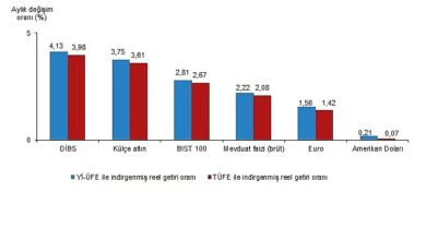 Aylık en yüksek reel getiri Devlet İç Borçlanma Senetleri (DİBS)'te oldu Aylık en yüksek reel getiri, yurt içi üretici…