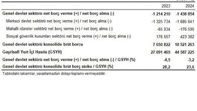 Genel devlet açığının Gayrisafi Yurt İçi Hasıla'ya oranı 2024 yılında %3,2 oldu Genel devlet açığı 2024 yılında 1 trilyon 438…