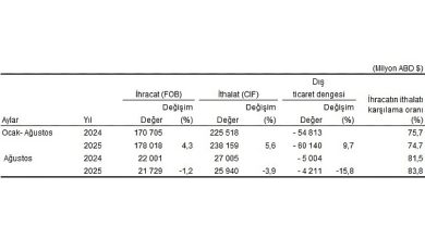 Ağustos ayında genel ticaret sistemine göre ihracat %1,2, ithalat %3,9 azaldı Türkiye İstatistik Kurumu ile Ticaret Bakanlığı iş birliğiyle genel…
